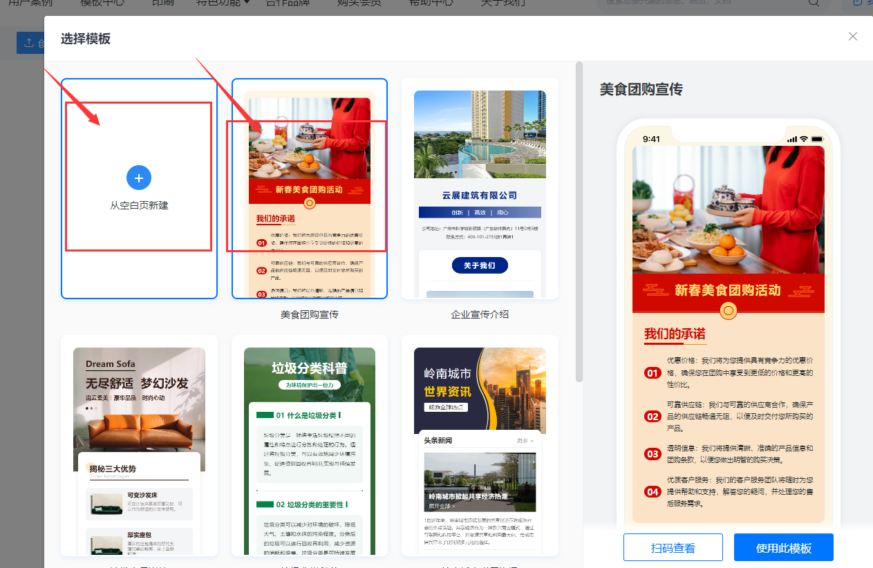 3、選擇【從空白頁創(chuàng)建】或者選擇【模板套用編輯】