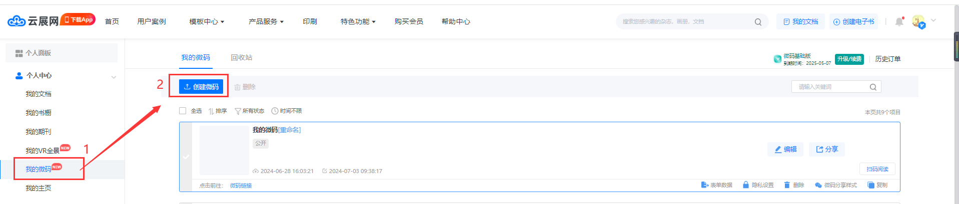 2、在【我的微碼】頁面,點(diǎn)擊【創(chuàng)建微碼】