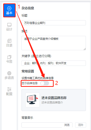 品牌信息能提高品牌的宣傳推廣力度,并且可以讓讀者了解品牌的基本信息,快速獲取聯(lián)系方式,云展網(wǎng)為了更好地幫助用戶推廣,因此用戶上傳的新書都是默認開啟品牌信息,如果不需要顯示品牌信息的話也是可以手動關(guān)掉的。
