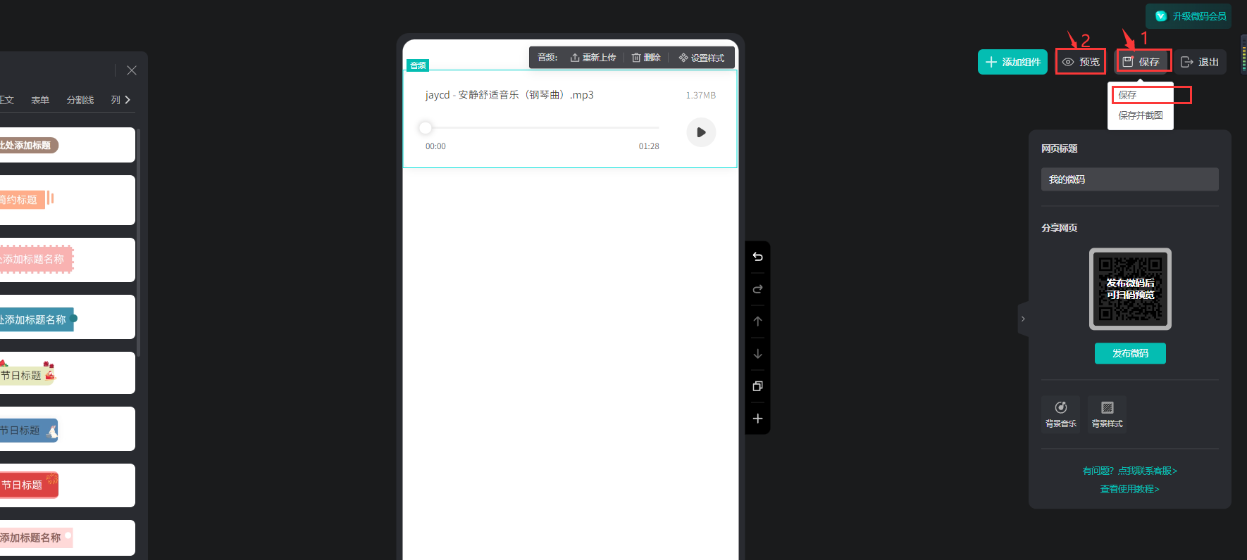 在微碼上可以插入音頻,為頁(yè)面注入生動(dòng)的元素,提升讀者的體驗(yàn)感。