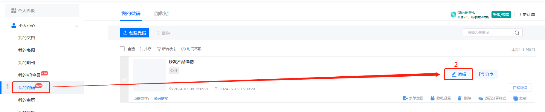 點(diǎn)擊【我的微碼】,然后點(diǎn)擊【編輯】。