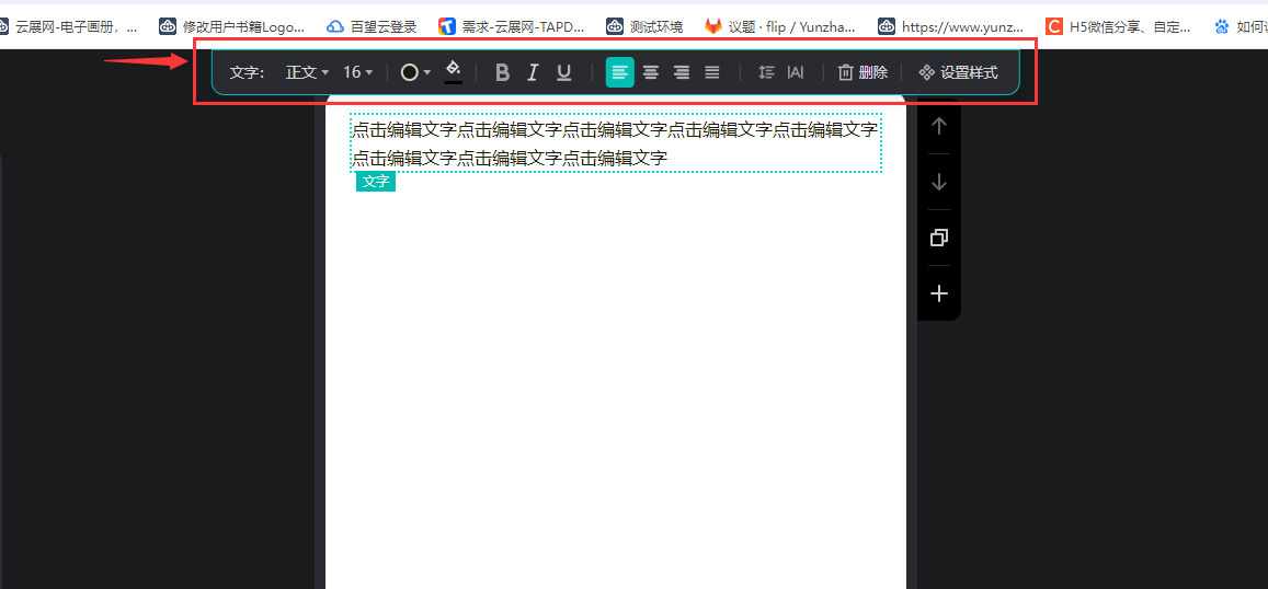 點(diǎn)擊文本框,在頁面上方可設(shè)置文字大小,顏色,對齊方式等