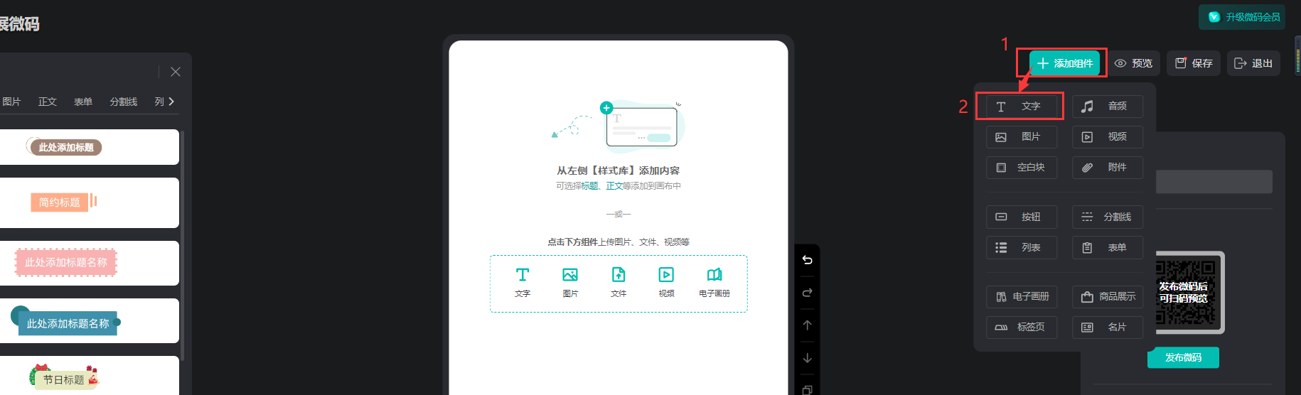 微碼可以自定義添加文字排版,設(shè)計(jì)個(gè)性化頁面布局。