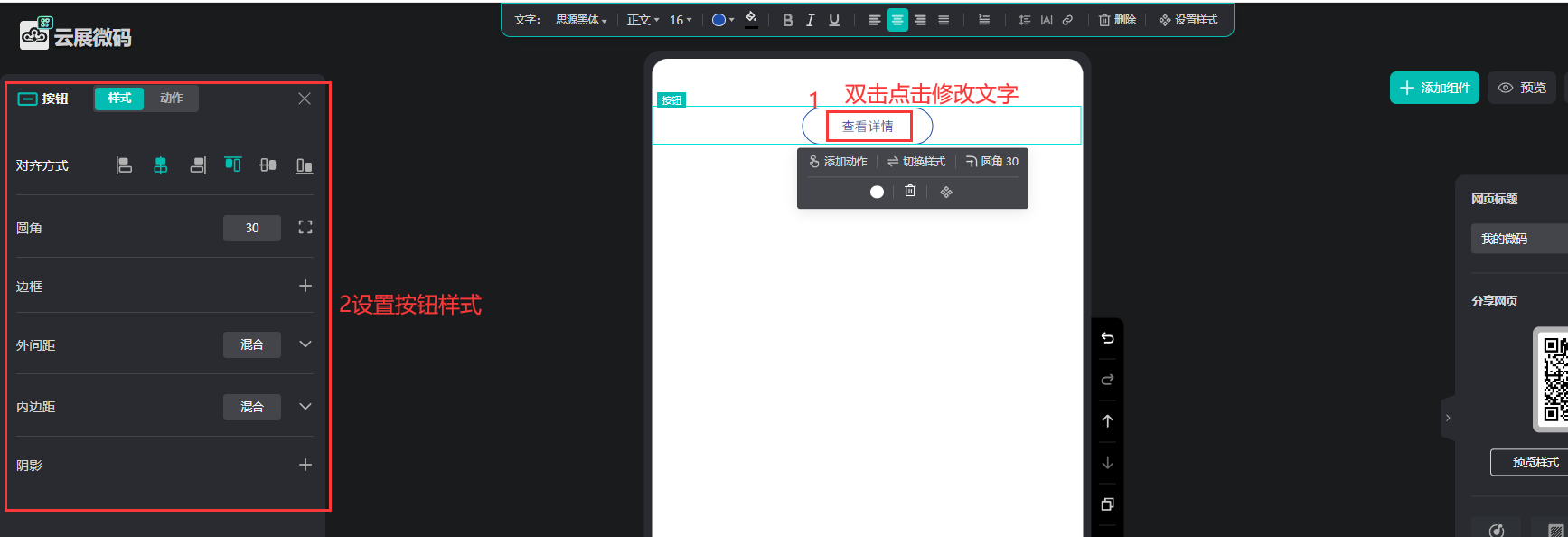 1、打開微碼的編輯頁面