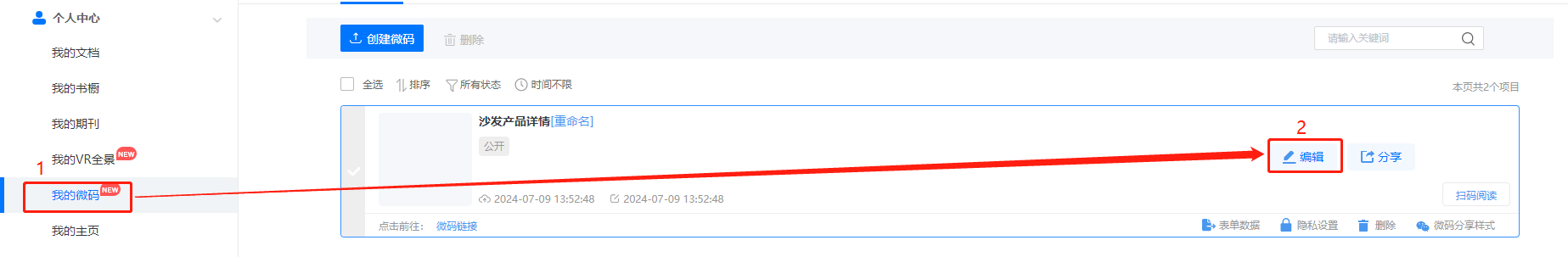 點(diǎn)擊【我的微碼】,點(diǎn)擊需要操作的微碼的【編輯】。