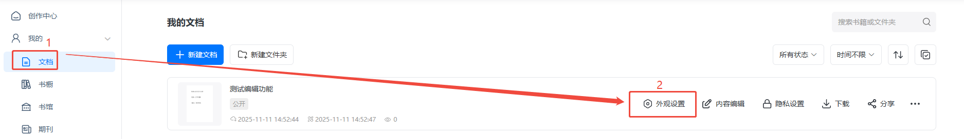 (1)點(diǎn)擊【外觀設(shè)置】,打開書本編輯頁面