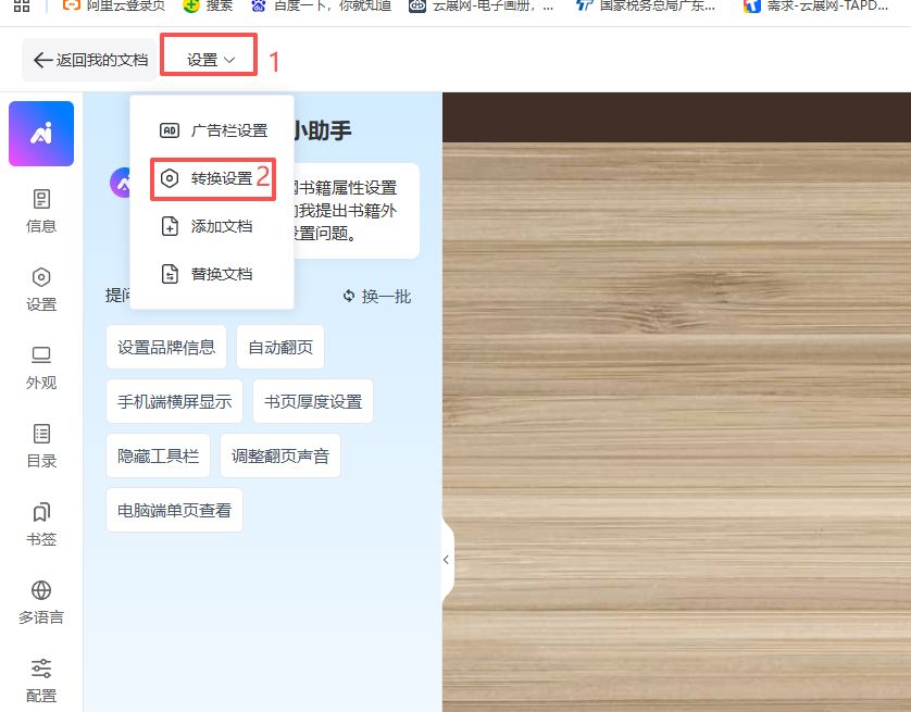 a)點擊左上角【設(shè)置】,然后點擊【轉(zhuǎn)換設(shè)置】。