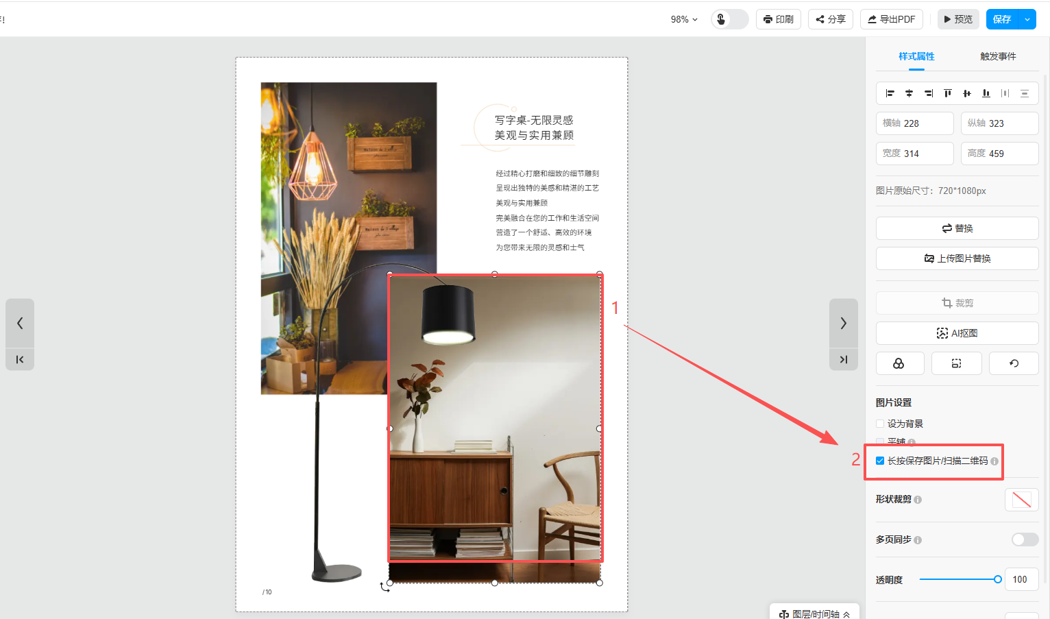 該功能能讓讀者在瀏覽電子畫冊時,若看到心儀的產(chǎn)品圖,可直接長按保存,效果如下: