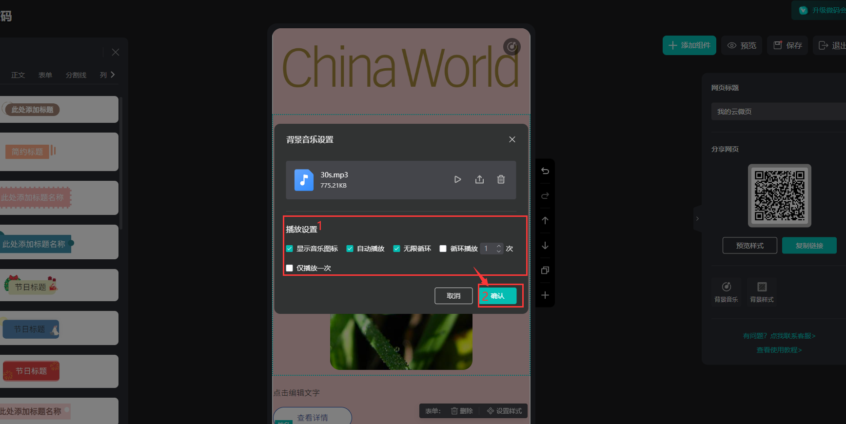 【自動(dòng)播放】:打開微碼自動(dòng)播放背景音樂