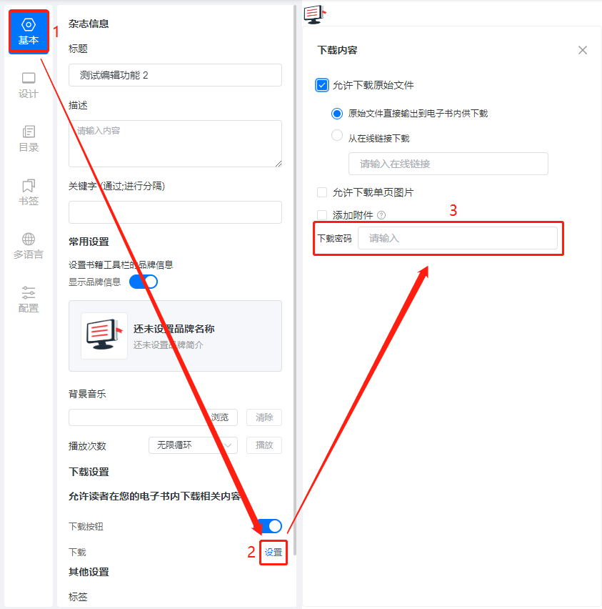 點擊【基本】,然后點擊下方的【設(shè)置】,在右側(cè)【下載密碼】輸入密碼。