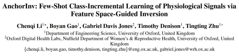 該論文收錄在AAAI Conference on Artificial Intelligence 2025(CCF A),題目為《AnchorInv: Few-Shot Class-Incremental Learning of Physiological Signals via Feature Space-Guided Inversion》。