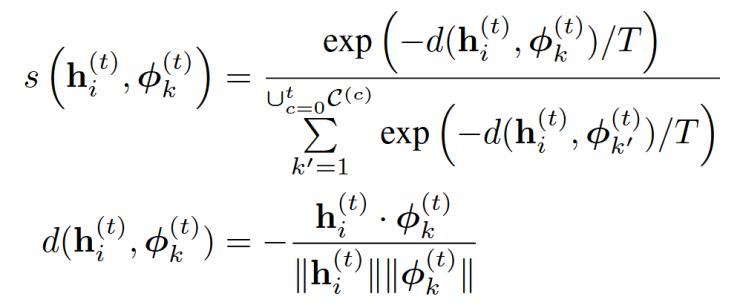 其中,分類器參數(shù)? k(t )由每個類別的平均嵌入(即原型)替代。