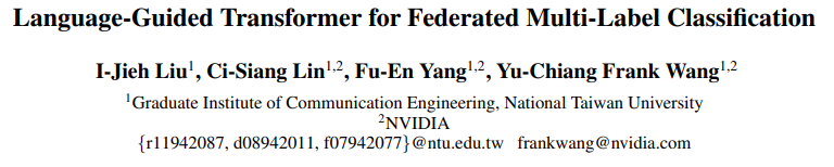 該論文發(fā)表于The Thirty-Eighth AAAI Conference on Artificial Intelligence(AAAI-24,人工智能領(lǐng)域頂級會議,CCF-A),題目為《Language-Guided Transformer for Federated Multi-Label Classification》。