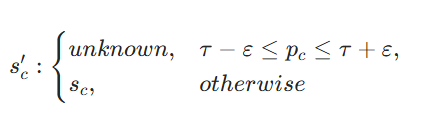 其中,τ= 0.5為判斷閾值,ε= 0.02為不確定性邊際,ρc為全局模型對標(biāo)簽c的預(yù)測概率。
